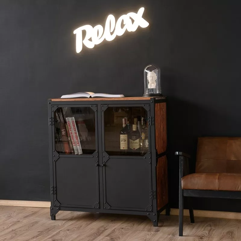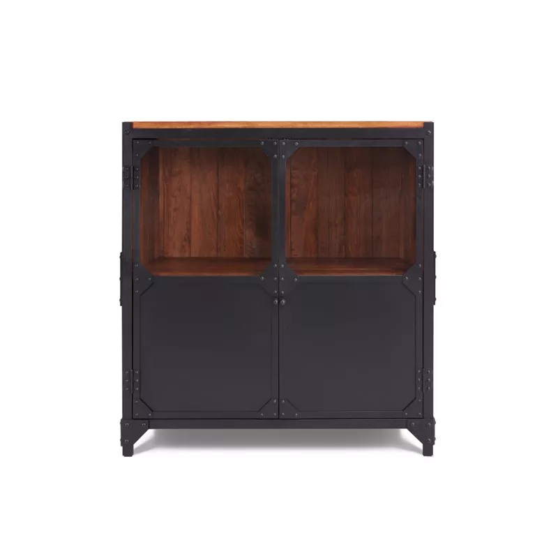 Das hochqualitative und langlebige Sideboard BROOKLYN ist ein stolzer Vertreter des Indiustrial-Stils. In das schwarz pulverbeschichtete Gestell aus Stahl wird reichlich Kiefernholz oder Eichenholz eingebaut. Die schnell nachwachsende Holzart Kiefer bietet sehr schöne Maserungen, die durch eine Beize in der Farbe Nuss hervorgebracht wird. Für alle Eichenholz Fans haben wir vier Varianten zur Auswahl: astig & geölt, astig & lackiert, nicht astig & geölt oder nicht astig & lackiert. Das 90 cm breite Sideboard ist ein echtes Stauraumwunder und bietet dank der verglasten Türen Präsentationsfläche für Ihre schönsten Stücke.