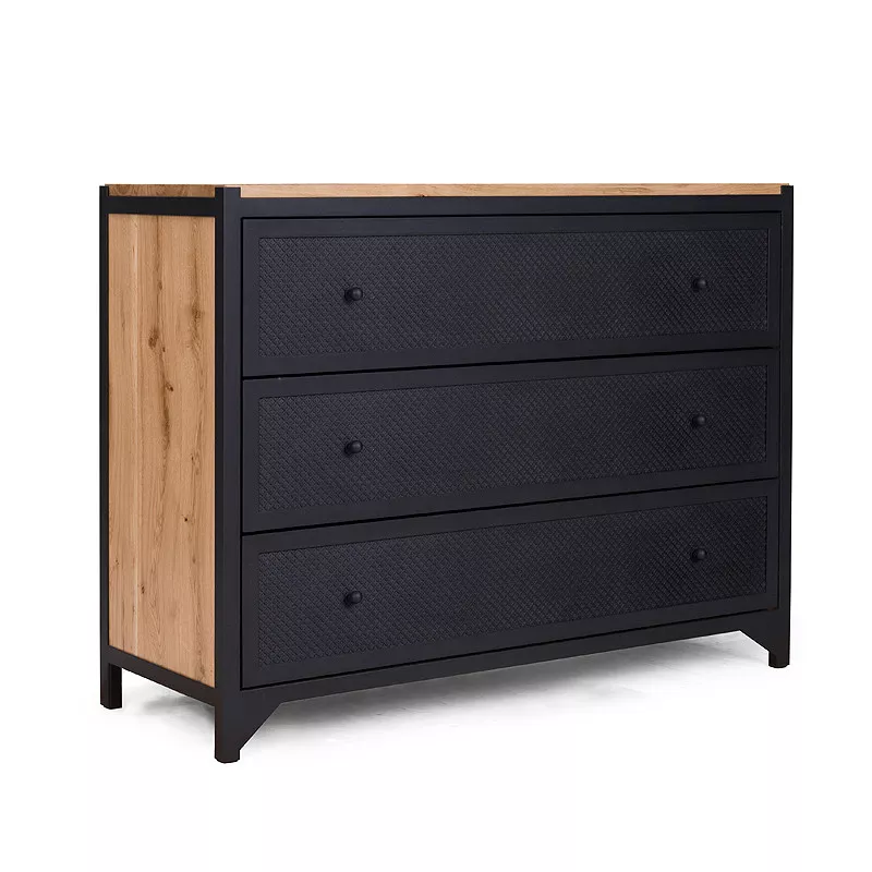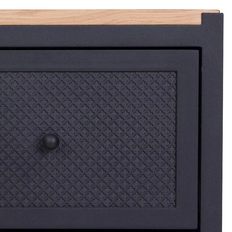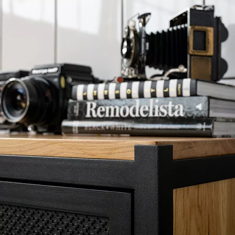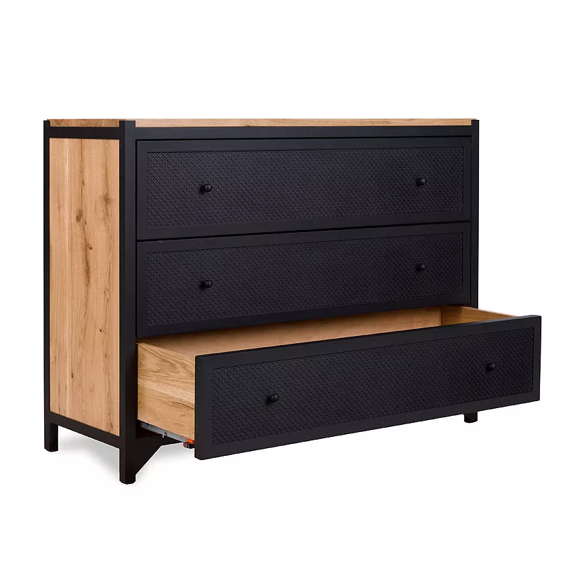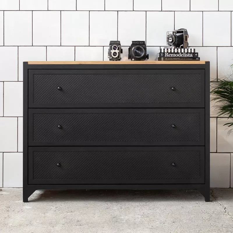 Die einzigartige Kommode mit Schubladen gehört zu der Kollektion CLOVER und wird aus Stahl und Holz gefertigt. Die Kommode bietet mit den drei großen Schubladen viel Stauraum egal ob in Wohnzimmer, Esszimmer oder Schlafzimmer. Das kleine Kleeblattmuster auf den Fronten der Schubladen wirkt sehr dekorativ und nicht überladen, der Muster ist anders als bei anderen Möbelstücken aus der Kollektion nicht transparent. CLOVER wird in aufwändiger Handarbeit gefertigt, sowohl die Schubladen als auch Rückwand sind aus Eichenholz. Dank einer Soft-Close Funktion und einem Selbsteinzug schließen alle Schubladen selbstständig und geräuscharm. Es ist ein hoch qualitatives und langlebiges Möbelstück.