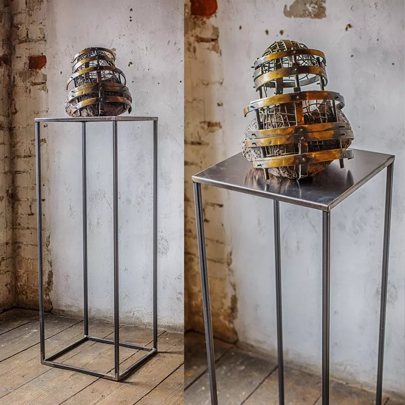 Der Sockel CREPIDO besteht aus pulverbeschichtetem Stahl für Tischplatte und Gestell, was ihn besonders robust, langlebig und pflegeleicht macht. Die Variante aus unbehandeltem Stahl wird mit einem transparenten Schutzlack versiegelt, um die natürliche Optik zu bewahren und gleichzeitig vor Korrosion zu schützen. Dank handwerklicher Fertigung überzeugt jeder Sockel durch eine erstklassige Verarbeitung und eine Tragfähigkeit von bis zu 50 kg – so sind Ihre wertvollen Objekte jederzeit sicher platziert.