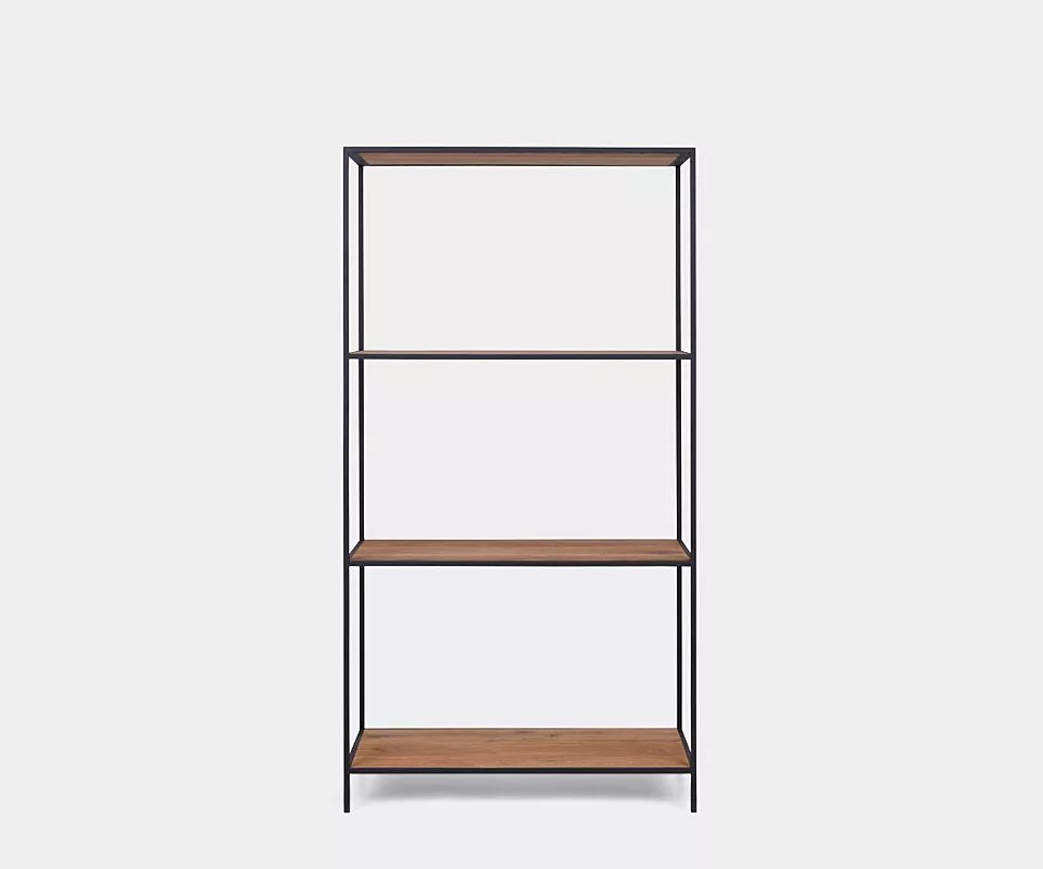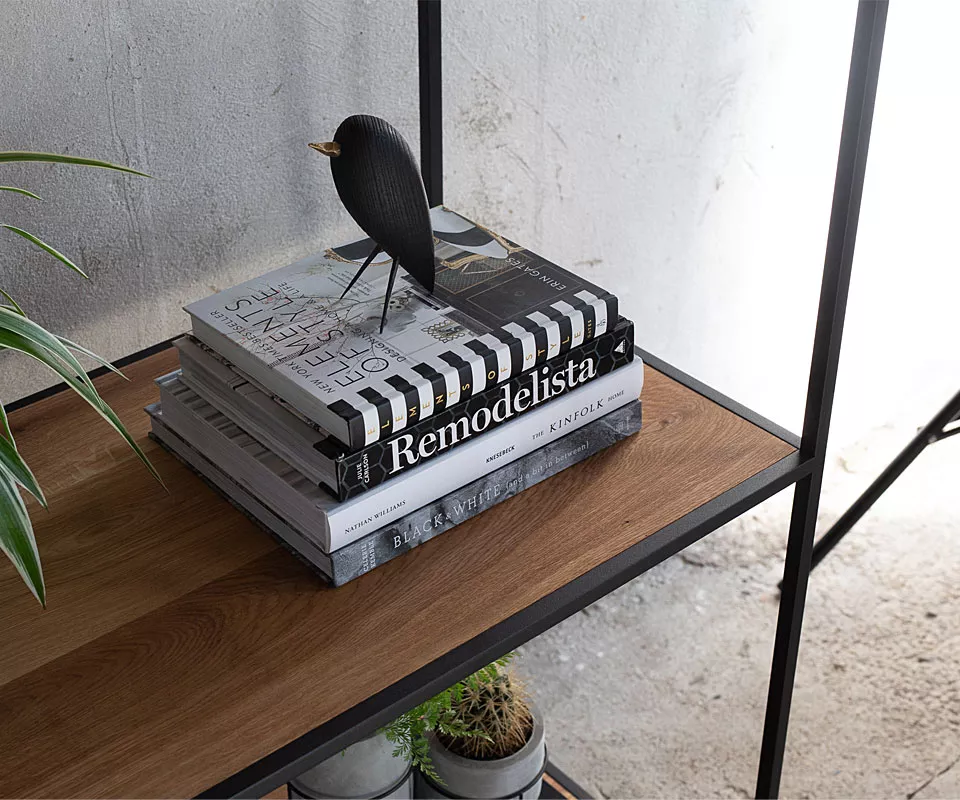 Das Regal FINIS ist Minimalismus pur. Das Regal wird in Handarbeit aus vollen quadratischen Eisenstäben 14x14 mm gefertigt und ist dadurch besonders robust. Die Ablageflächen aus Eichenholz werden sehr dünn geschliffen und in das Metallgestell, präzise eingesunken. Das Metall wird umweltschonend pulverbeschichtet und das Eichenholz lackiert. Das Regal FINIS dient in erster Linie dekorativen Zwecken, vor allem durch die großen Abstände zwischen den Ablagen, die genügend Platz für hohe Gegenstände bieten.