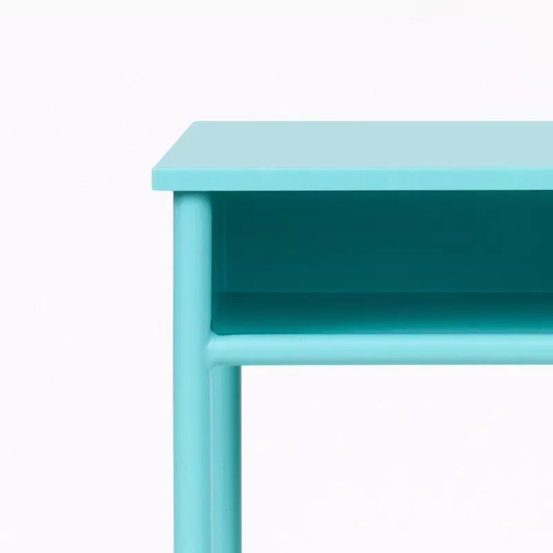 Der komplett aus Stahl gefertigte Nachttisch HERI I versprüht einen ganz eigenen Charme im Retro-Look. Der pulverbeschichtete Nachttisch ist ein wahres Schmuckstück in jedem Kinderzimmer oder Schlafzimmer. Der Nachttisch wird genauso wie alle unseren Möbel in Handarbeit hergestellt und wurde passend zu unseren Metallbetten im Retro-Stil designt.