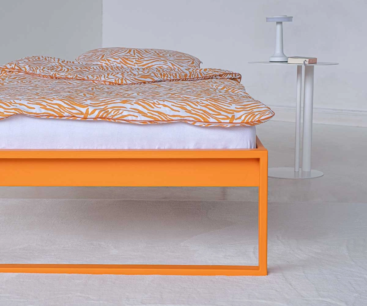 Das moderne Metallbett SORS lädt zum Erholen ein. Dieses in Handarbeit gefertigte Metallbett ohne Kopf- und Fußteil ist eine Alternative für alle Staubsauger-Roboter-Besitzer :-) zum Modell SIMPLEX. Das zurückhaltende Design und der geradelinige Rahmen passen sich perfekt dem Interior an.