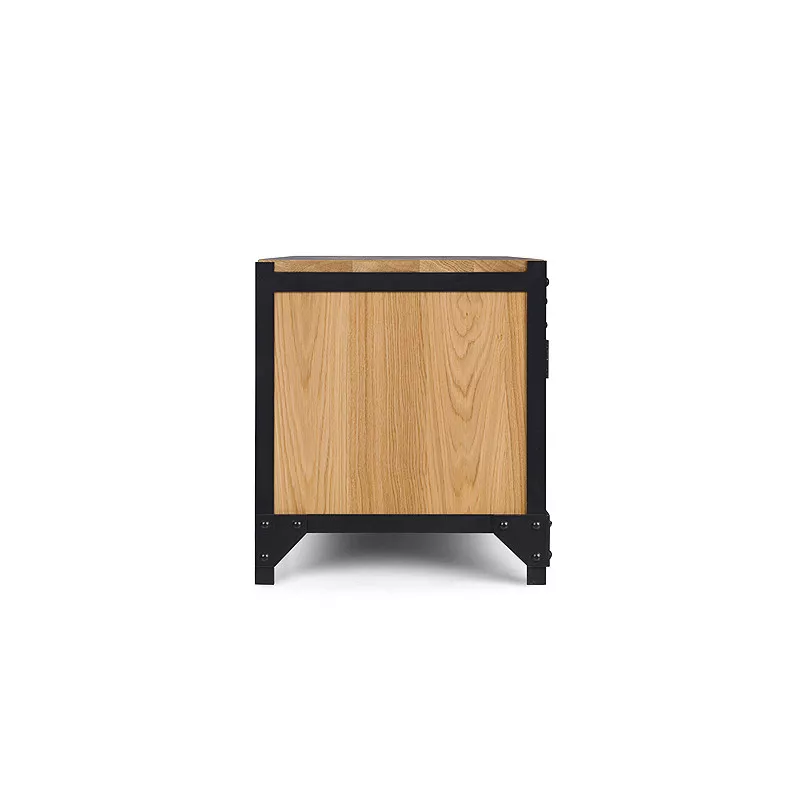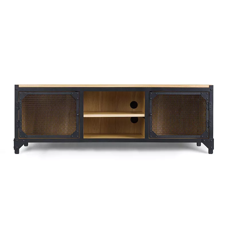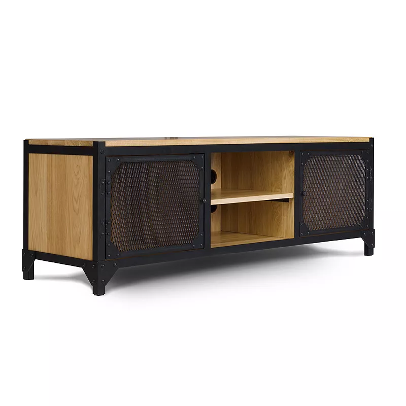 Setzen Sie mit einem TV Lowboard im Industrial Look trendige Akzente in ihrem Wohnzimmer. Das robuste TV Lowboard STATEN ISLAND wird in liebervoller Handarbeit aus Stahl, Streckmetall und Kiefern- oder Eichenholz gefertigt. Das Lowboard ist 145 cm breit und bietet damit genügend Platz für alle TV-Geräte. Die Kabel können durch die auf der Rückseite des Boards befindlichen Öffnungen geführt werden.