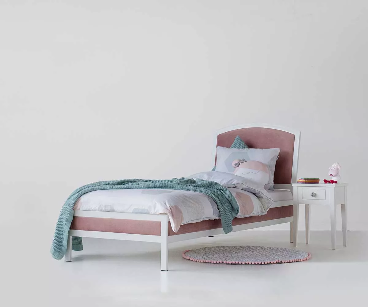 Das zauberhafte Polsterbett VANESSA, das zugleich auch Metallbett ist, ist das ideale Kinder- oder Jugendbett. Das Kopfteil und die Bettleisten werden mit einem Velours-Stoff bezogen, der sehr weich und angenehm ist.