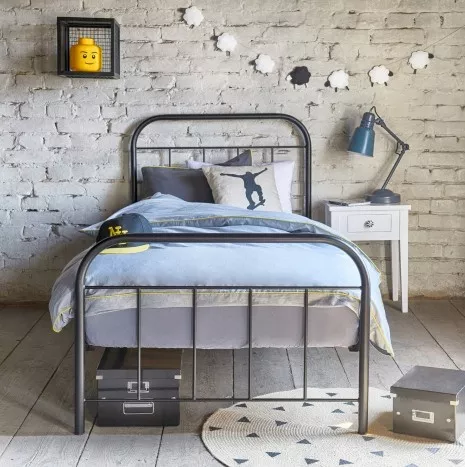 Ein Metallbett ohne Kopfteil fasziniert durch seine Schlichtheit. Dieses schöne Metallbett eignet sich perfekt sowohl für bunte Kinderzimmer als auch für elegante Gästezimmer. Mit einem selbstgebauten Betthaupt lässt sich das einfache Bett in ein individuell designtes Möbelstück verwandeln.